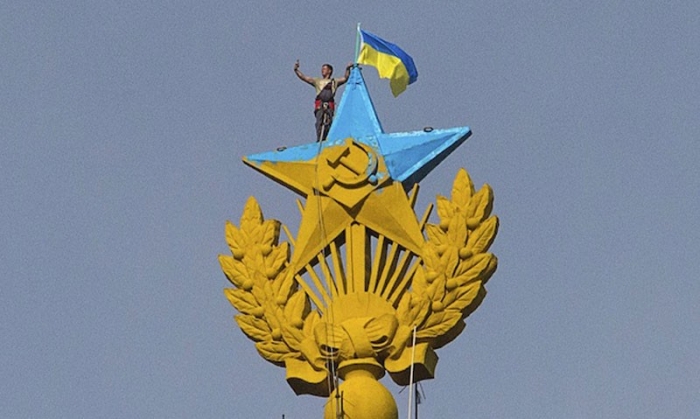 Din Ucraina, unde trăieşte, el a afirmat că este singurul responsabil în acest caz şi a difuzat o înregistrare video a sa şi a acrobaţiilor sale în vârful imobilului stalinist. „Nu i-am văzut pe aceşti ruşi pe acoperiş şi nu-i cunosc", susţine el, adăugând că „un val de sentimente patriotice" l-a determinat să picteze din nou steaua, într-un moment în care conflictul între soldaţi ucraineni şi combatanţi separatişti proruşi îşi dublează intensitatea.