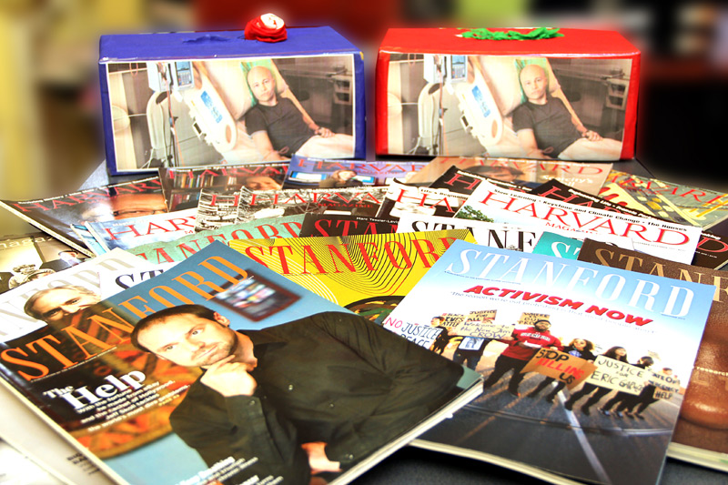 Elevii de top ai Brăilei, şi nu numai, precum şi candidaţii la master sau doctorat, interesaţi de a studia în străinătate, au ocazia unică de a descoperi secretele vieţii de student la Harvard şi Stanford şi de a fi la curent cu cele mai noi proiecte desfăşurate de aceste universităţi. Brăileanul Cristinel Stoica Popa, absolvent a trei instituţii de prestigiu din lume - Stanford, Harvard şi Texas University, se alătură campaniei de strângere de fonduri pentru Cristian Filip şi scoate la licitaţie colecţia sa personală de 61 de reviste: 46 de reviste Stanford Magazine şi 15 reviste Harvard Magazine. Revistele sunt publicaţii pe care le primesc doar absolvenţii acestor universităţi şi abordează cele mai curente şi relevante proiecte de cercetare de vârf desfăşurate la aceste instituţii. În plus, publicaţiile cuprind şi articole despre procesul de admitere dar şi despre cultura instituţională.
