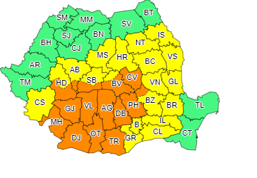 * atenţionarea tip cod galben intră în vigoare astăzi la ora 20.00