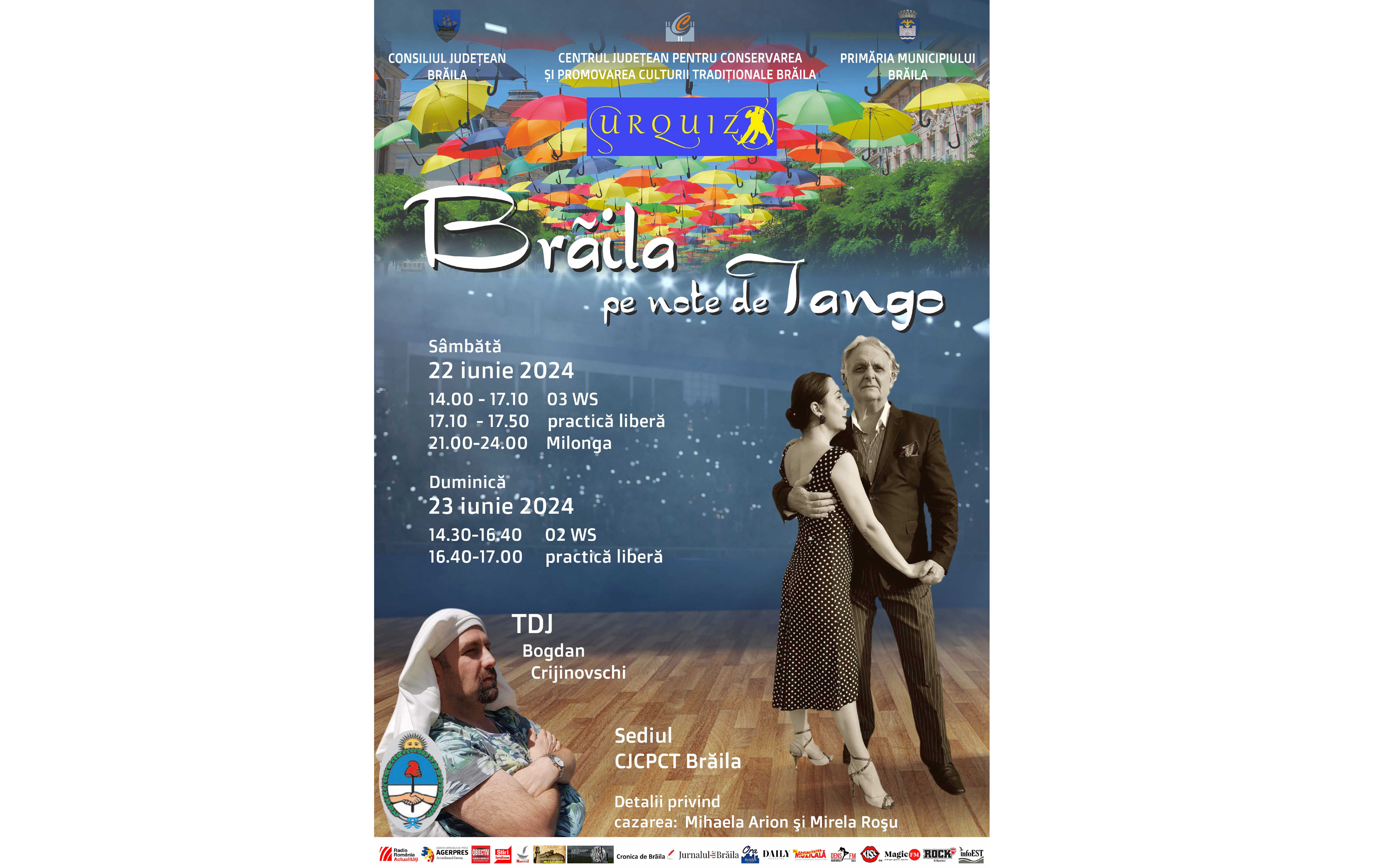 „Evenimentul „Brăila pe note de tango” va prilejui întâlnirea cu cei mai talentaţi dansatori şi specialişti ai acestui stil de dans, alături de invitații speciali, deja consacrații Mirela Roșu și Giorgio Panico, maeștri în arta tango-ului, promotori culturali, reprezentanți ai Școlii de dans Urquiza, și Tdj Bogdan Crijinovschi. Evenimentul este organizat de Consiliul Județean Brăila, prin Centrul Județean pentru Conservarea și Promovarea Culturii Tradiționale Brăila, Primăria Municipiului Brăila și Școala de dans Urquiza”, precizează organizatorii evenimentului din acest weekend.
