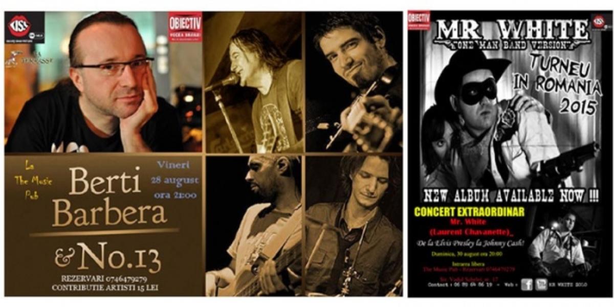 Două concerte extraordinare vor avea loc în acest final de săptămână la Brăila, pe terasa The Music Pub. Este vorba despre un concert Berti Barbera şi un show Mr. White. Mai exact, în această seară, amatorii de muzică bună vor avea parte de un spectacol special susţinut de actorul şi cântăreţul Berti Barbera alături de Trupa 13. Concertul va începe la ora 21:00, iar cei prezenţi se vor putea bucura de trei ore de muzică live, care vor cuprinde coveruri de la genul dance la rock and roll, cu treceri subtile prin reggae, jazz şi alternativ. Preţul unui bilet este 15 lei.