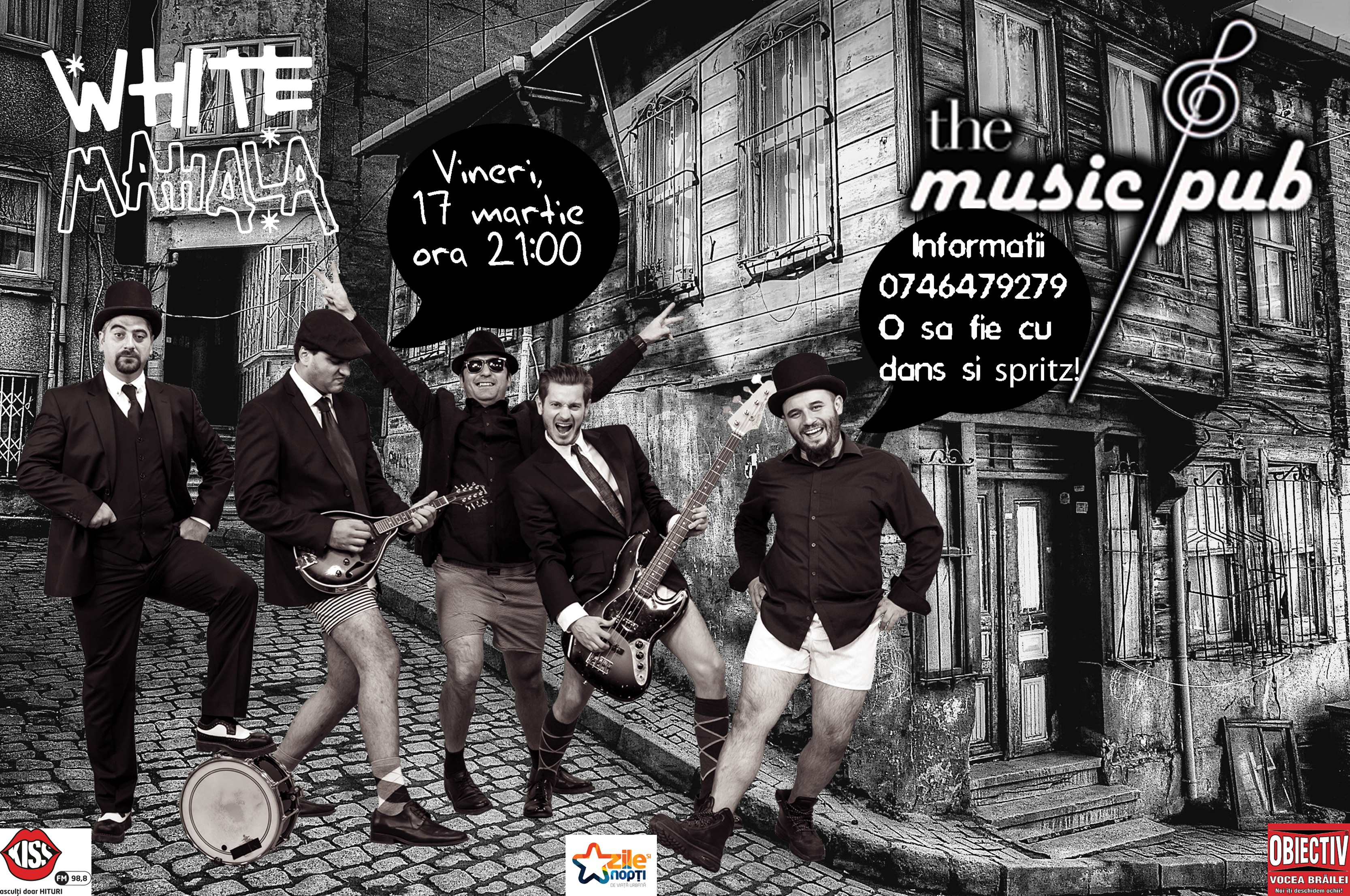 Una dintre cele mai neconvenţionale trupe româneşti, White Mahala va concerta, vineri seară, la Brăila, pe scena The Music Pub, începând cu ora 21:00. Grupul, care îl are ca solist pe actorul Ovidiu Niculescu, este cunoscut pentru faptul că reuşeşte să combine cu succes muzica românească interbelică, lăutăria autentică, elemente rock şi totuşi să vină cu un sunet modern.
