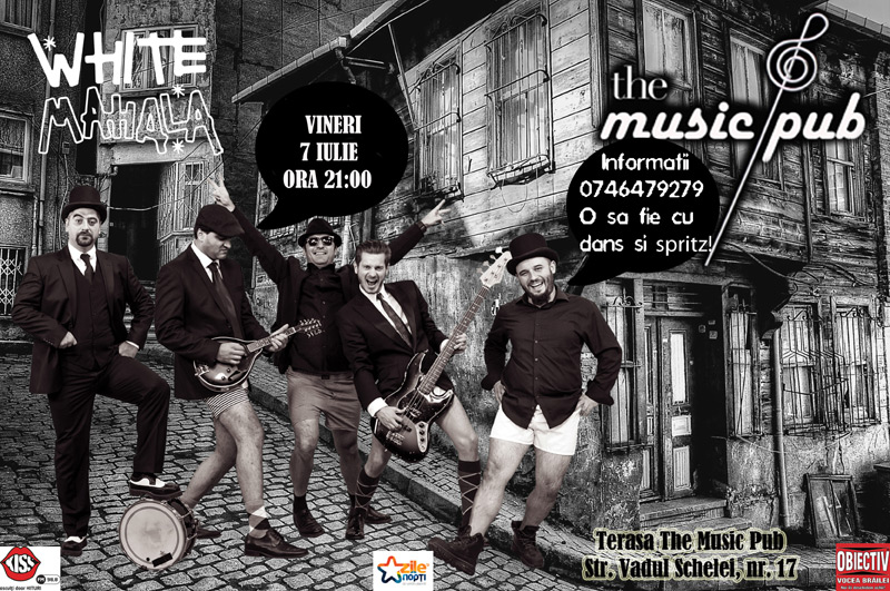 Una dintre cele mai neconvenţionale trupe româneşti, White Mahala va reveni la Brăila cu un concert memorabil, vineri, 7 iulie, începând cu ora 21:00, pe scena terasei The Music Pub (lângă Patinoar). Avându-l solist pe binecunoscutul actor Ovidiu Niculescu, trupa este altfel pentru faptul că reuşeşte să combine cu succes muzica românească interbelică, lăutăria autentică, elemente rock şi totuşi, să vină cu un sunet modern. Ca o surpriză, la show-ul de vineri seară, brăileanul Sorin Nicolescu, unul dintre cei mai apreciaţi trompetişti ai României, va completa componenţa grupului, spre deliciul celor prezenţi.