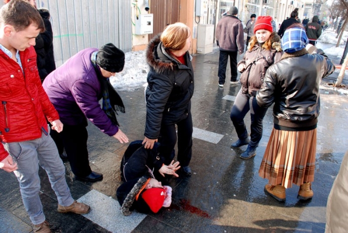 Scene de coşmar în plin centrul Brăilei, ieri, în jurul orei 10.30. O femeie căzută pe strada Republicii zăcea cu capul spart, într-o baltă de sânge, parţial închegat, în timp ce unii dintre trecători o zgâlţâiau, încercând să o readucă în simţiri. Oamenii voiau să o ajute până la sosirea amabulanţei, pentru chemarea căreia fuseseră efectuate mai multe apeluri telefonice la numărul unic de urgenţă 112. Văzând însă că ajutorul medical întârzie, s-au apucat să acţioneze fiecare, după cum s-a priceput. Femeia întinsă pe trotuar, care avea în jur de 30 de ani, a fost recunoscută de o trecătoare ca fiind vecina ei de pe strada Comuna din Paris. Cum aceasta ştia că tânăra suferă de epilepsie, a încercat să o ţină în stare conştientă, mişcând-o, din timp în timp, când bolnava dădea semne că adoarme sau leşină. "O cheamă Nicoleta, nu mai ştiu numele de familie. Are doi copii. Cred că a fost la Asistenţă Socială după ajutoare şi a făcut o criză", a declarat trecătoarea. O altă martoră la eveniment era de părere că cineva ar trebui să o muşte de deget pe bolnavă, considerând că aşa se acordă ajutorul unei persoane cu criză de epilepsie. În tot acest timp, în jurul femeii s-au strâns mai mulţi brăileni, îngrijoraţi de situaţia în care se afla, şi fiecare a încercat să o ajute cu ce a putut: i-au ridicat din noroi, actele şi ochelarii, având grijă să nu se piardă şi i-au aşezat sub cap un fular. Oamenii erau revoltaţi că deşi au tot sunat la 112, ambulanţa întârzia să sosească. "Am sunat de acum jumătate de oră, dar moare omul până vin ei. Eu am fost primul care a găsit-o. Au sunat şi cei de la magazinul de telefonie mobilă, au sunat mai multe persoane, se poate verifica ora pe telefoanele de pe care s-a sunat", ne-a spus un martor.