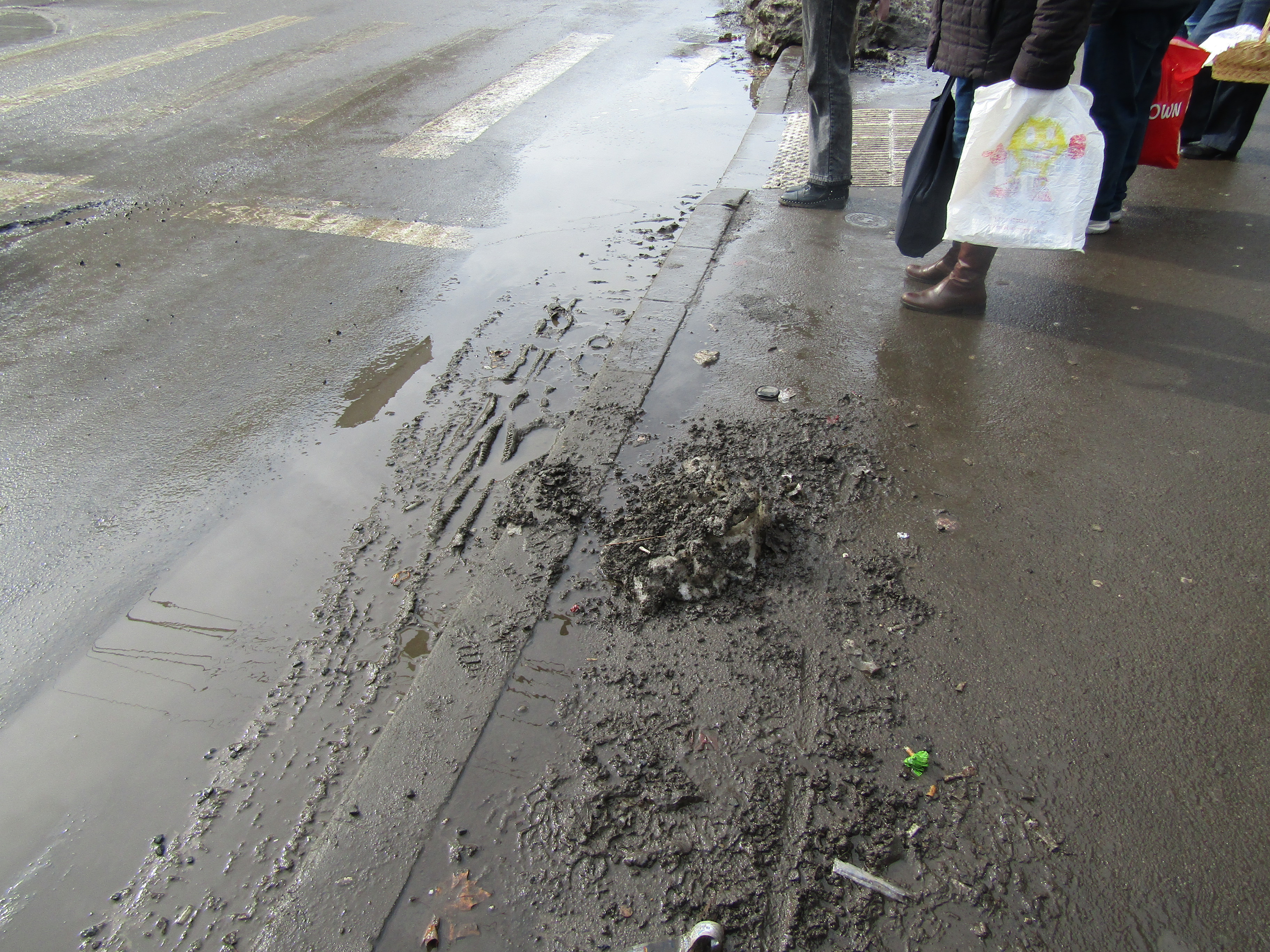 * mizeria rămasă în urma topirii munților de zăpadă fie este împinsă în gurile de canalizare, de salubriștii dotați cu mături, fie rămâne pe trotuare și carosabil, în bătaia vântului care, inevitabil, o împrăștie în aerul pe care îl respirăm