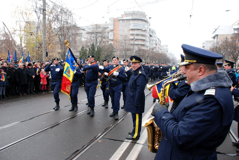 La parada ce a urmat, de pe Calea Călăraşilor, au participat plutoane reprezentative ale tuturor unităţilor din cadrul Garnizoanei, începând cu geniştii şi continuînd cu celelalte arme: cercetaşi, artilerişti, marinari militari, pompieri şi jandarmi.