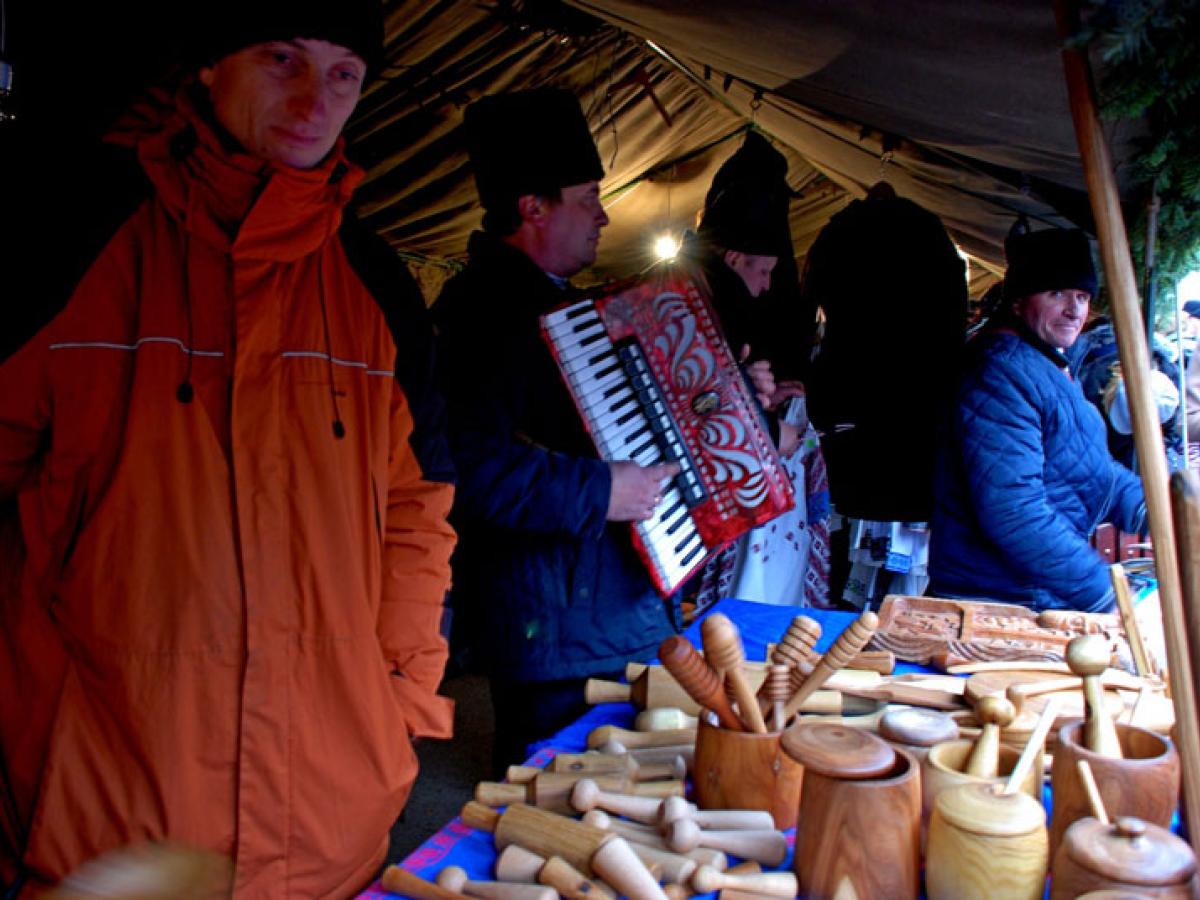 În paralel cu ceremoniile prilejuite de Ziua Naţională a României, s-a deschis şi târgul de iarnă organizat de Primărie unde, aşa cum anunţaseră oficialităţile, au primit standuri doar meşterii populari care au de oferit produse tradiţionale. Meşteri olari, cioplitori în lemn sau blănari ofereau, ieri, la vânzare mărfuri despre care spuneau că le-au făcut singuri. Printre cele mai căutate standuri s-a dovedit a fi cel al lui Alexandru Vlagu, din Cahul, Republica Moldova, care a venit la Brăila cu produse cioplite în lemn atât de multe cât să umple o tarabă. „Atâtea am putut aduce, fiindcă sunt făcute de mine personal şi mai multe n-am avut timp să cioplesc”, ne-a spus meşterul, care avea la vânzare linguri, mojare pentru pisat usturoi, făcăleţe, funduri pentru tocat legume şi alte asemenea. Se putea remarca o finisare deosebită a acestor produse, iar meşterul ne-a mărturisit că, pentru a fi atât de netede, le-a frecat cu ulei de in şi ceară, o metodă folosită din bătrâni în zona Basarabiei. Spre deosebire de celelalte standuri, la cel al basarabeanului a răsuna şi muzica unor lăutari care au „performat” la faţa locului, unul cu toba, celălalt cu acordeonul, reuşind să dea o notă de bună dispoziţie care trezea curiozitatea muşteriilor, făcându-i să se apropie şi să remarce produsele meşterului lemnar.