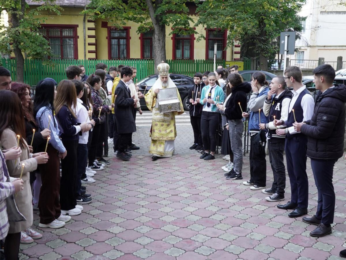La finalul slujbei, elevii și credincioșii prezenți s-au închinat la racla ce adăpostește o părticică din Moaștele Sfântului Apostol Andrei, aflată în patrimoniul sacru al Reședinței arhiepiscopale. Toți elevii prezenți la slujbă au primit daruri din partea ierarhului Dunări de Jos, a mai precizat pr. Rareș Bucur.