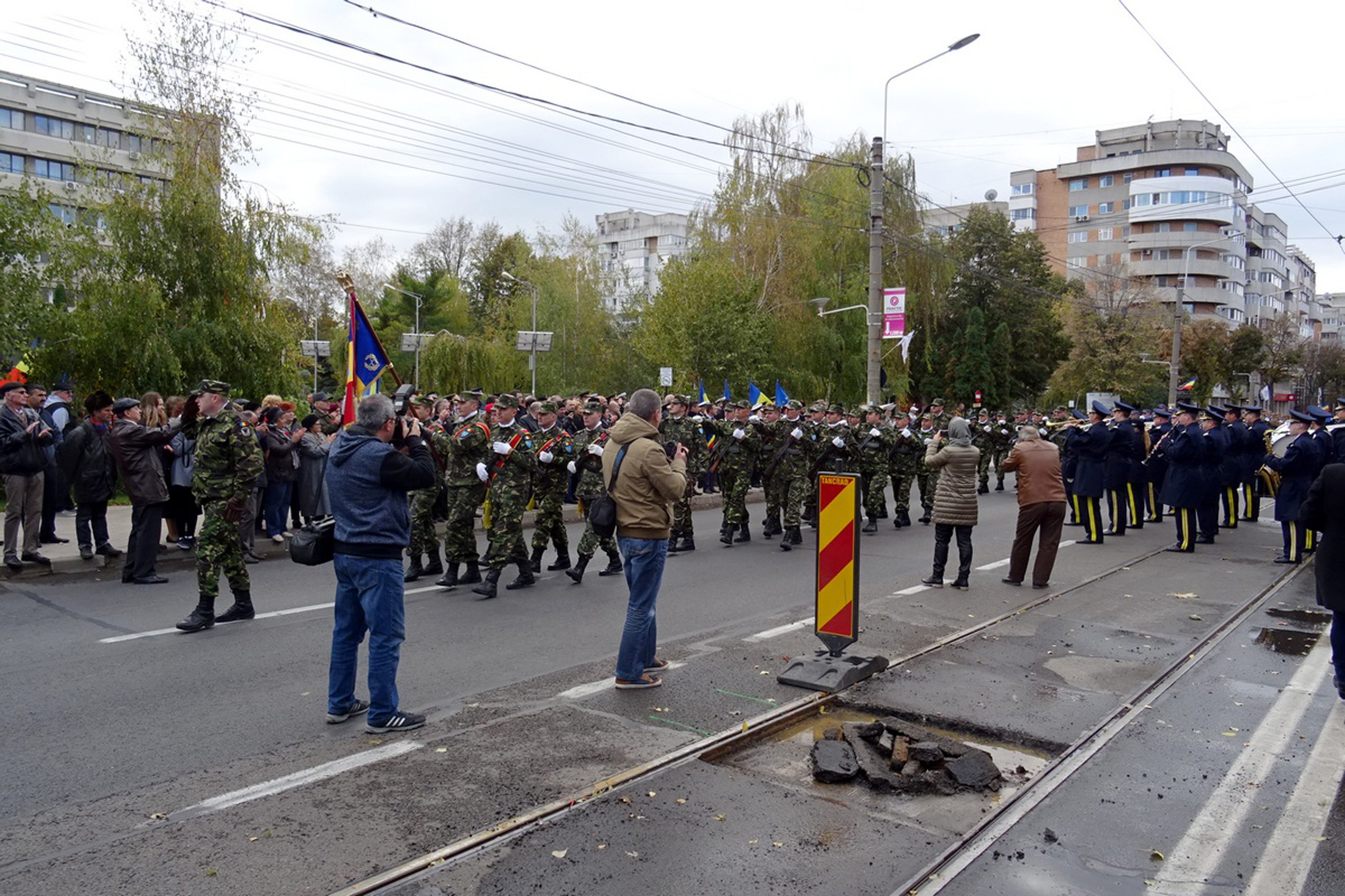• militarii au defilat pe Calea Călăraşilor, lângă şantierul deschis de firma “Tancrad” de-a lungul liniilor de tramvai • pe lângă obişnuitul ceremonial militar, brăilenii au putut vedea şi o expoziţie de tehnică de luptă, amenajată în parcarea de lângă Piaţa Independenţei