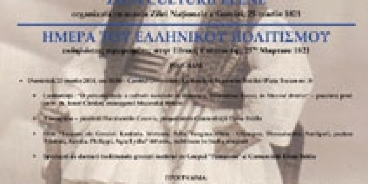 Muzeul Brăilei şi Comunitatea Elenă Brăila organizează duminică, 23 martie, de la ora 11.00, Ziua Culturii Elene. Evenimentul se va desfăşura la Centrul Diversităţii Culturale al Muzeului Brăilei