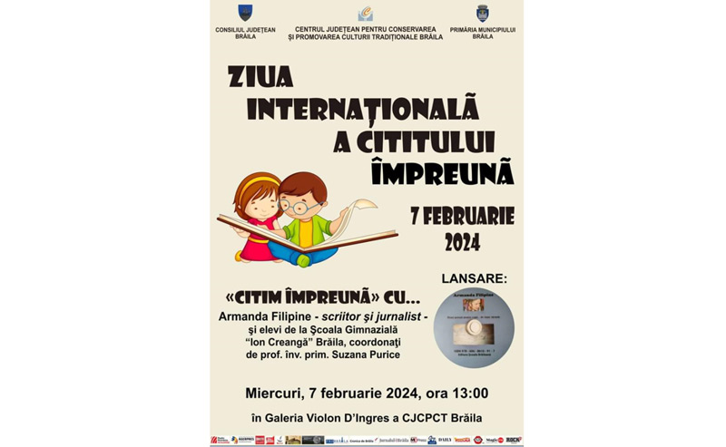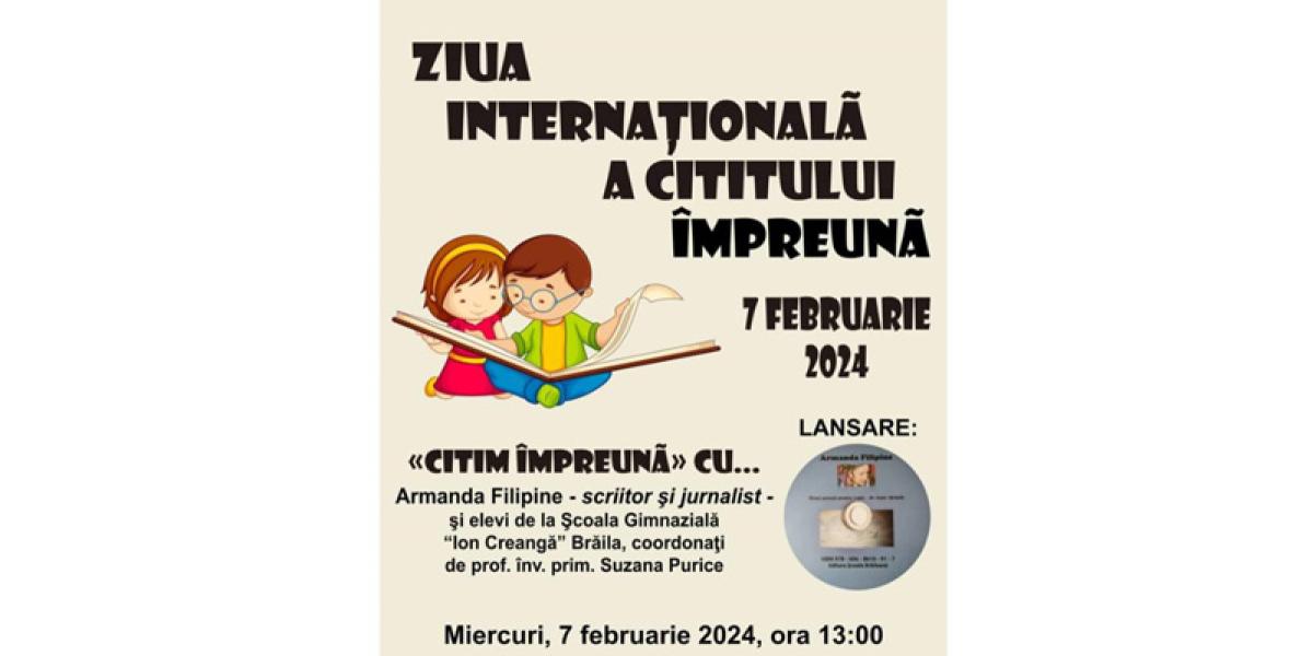 „Și noi ne vom alătură milioanelor de oameni de pe întregul glob care sărbătoresc Ziua Internațională a Cititului Împreună, prin susținerea unei sesiuni de lectură la care vor lua parte elevii Clasei a III-a C (Clasa Supereroilor), din cadrul Școlii Gimnaziale «Ion Creangă» Brăila și Armanda Filipine, scriitor și jurnalist, cea care ne va împărtăși tainele cititului și secretele din minunatul univers al lecturii”, precizează surse din cadrul Centrului de Creație Brăila.