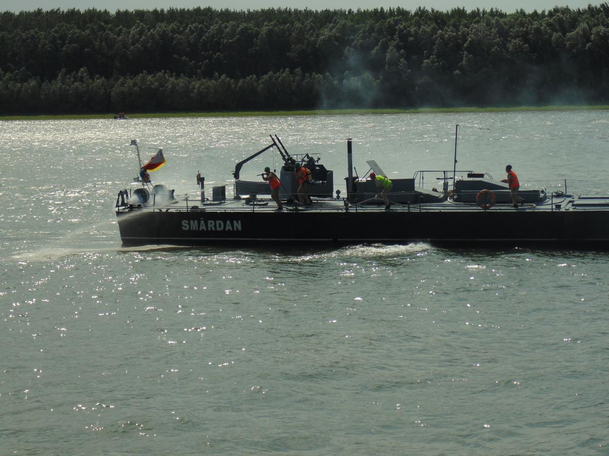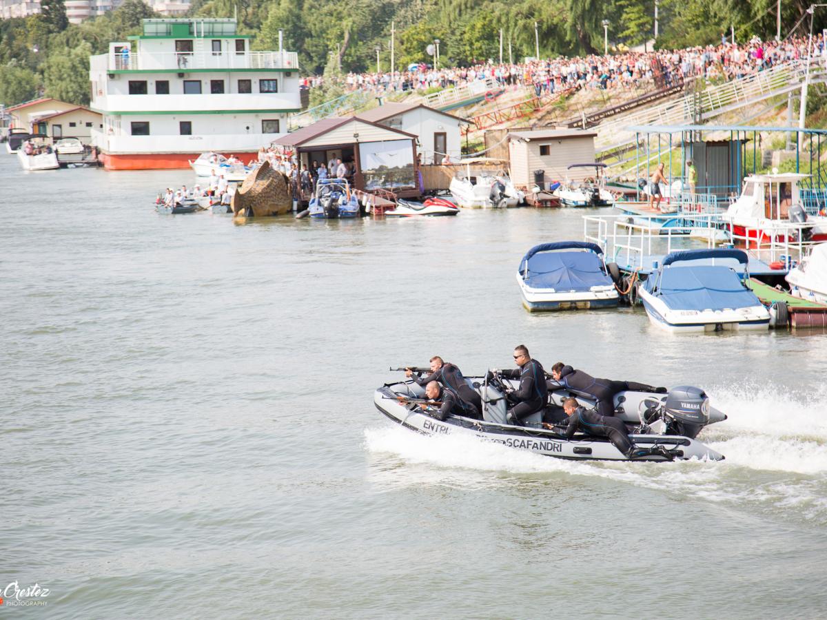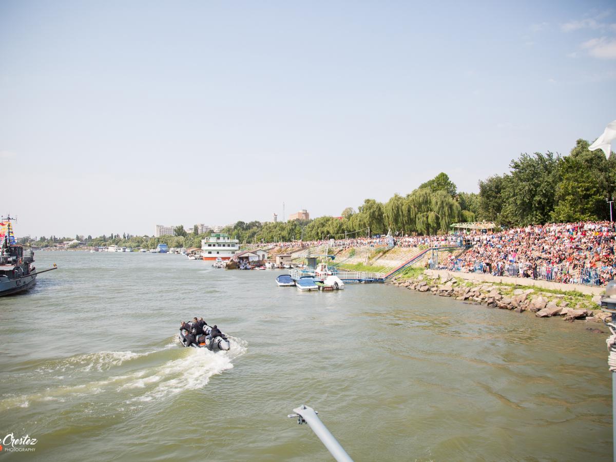 Brusc, patru ambarcaţiuni cu trupe din infanteria marină şi scafandri fluviali şi-au făcut apariţia pe Dunăre, apropiindu-se foarte mult de malul pe care se afla publicul. Asta, în timp ce vedetele blindate trăgeau cu tunurile pentru a le “acoperi”.