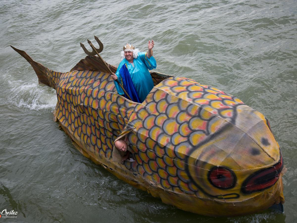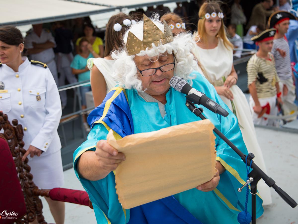 După episodul exerciţiului tactic, şi-a făcut apariţia, bineînţeles, Zeul Neptun, întruchipat de actorul brăilean Florin Chirpac. Acesta a ajuns la eveniment într-o ambarcaţiune în formă de peşte, însoţit de ale sale nimfe, pentru a patrona jocurile marinăreşti. Miile de brăileni adunaţi pe faleză au aşteptat cu interes tradiţionalele probe “Porcul la şcondru” şi “vânătoarea de raţe”. Startul jocurilor a fost dat chiar de Zeul Neptun.