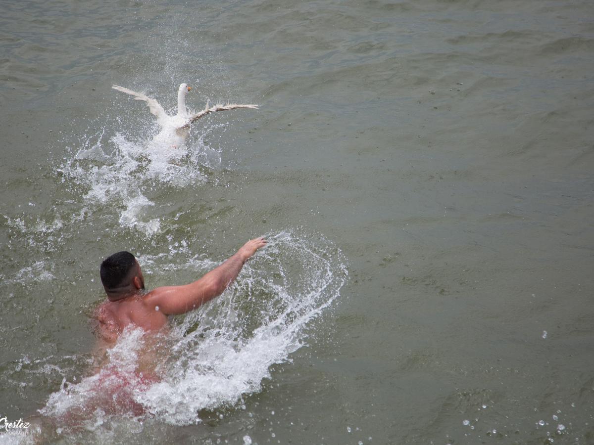 Jocurile marinăreşti s-au încheiat cu “vânătoarea de raţe”, o altă probă care a stârnit hohote de râs din partea publicului. După ce raţele au fost eliberate dintr-o şalupă, înotătorii au sărit în apă pentru a le prinde. Anul acesta, probabil şi din cauza vântului, păsările le-au dat mari bătăi de cap urmăritorilor, concurenţii fiind nevoiţi să înoate minute bune pentru a le veni de hac, spre deplinul amuzament al privitorilor de pe mal.