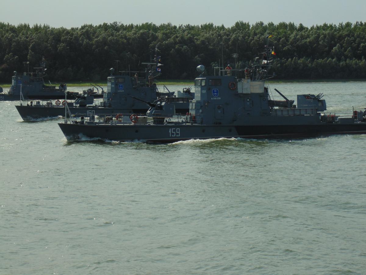 După ce s-a încheiat joaca de-a războiul, a început defilarea navelor militare, dar şi a câtorva nave civile - împingătoare din dotarea unor societăţi comerciale, şalupe, ambarcaţiuni private.