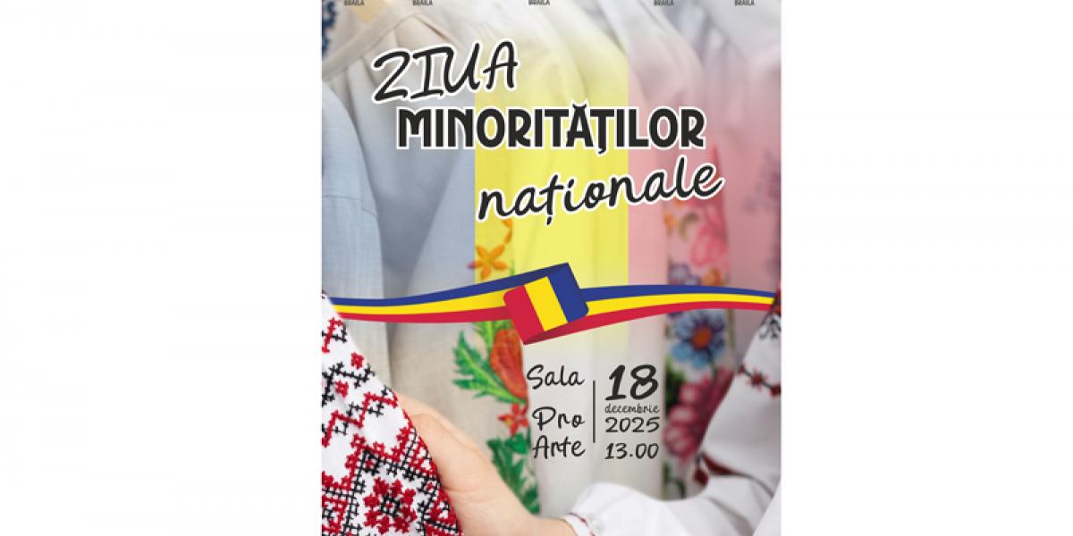 Consiliul Judeţean Brăila, Instituția Prefectului Brăila, Centrul Judeţean pentru Conservarea şi Promovarea Culturii Tradiţionale, Primăria Municipiului Brăila și Inspectoratul Școlar Brăila organizează, joi, 18 decembrie 2025, de la ora 13:00, Ziua Minorităților Naționale - un moment de recunoaștere a bogăției culturale, lingvistice și spirituale pe care fiecare comunitate o aduce patrimoniului nostru comun.