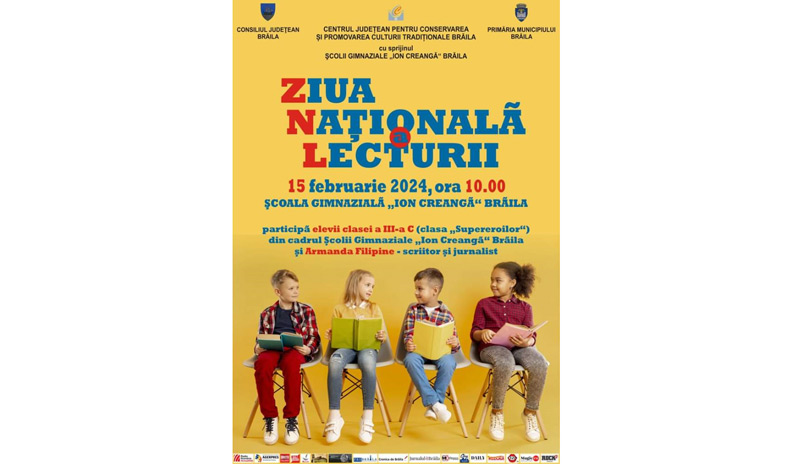 Consiliul Județean Brăila - prin Centrul Județean pentru Conservarea și Promovarea Culturii Tradiționale (Centrul de Creație) - și Primăria Municipiului Brăila celebrează joi, 15 februarie 2023, Ziua Naţională a Lecturii, prin două evenimente culturale incluzând „activități de promovare a importanței lecturii și a rutinei de citit”, pentru a face față cu succes provocărilor societății actuale.