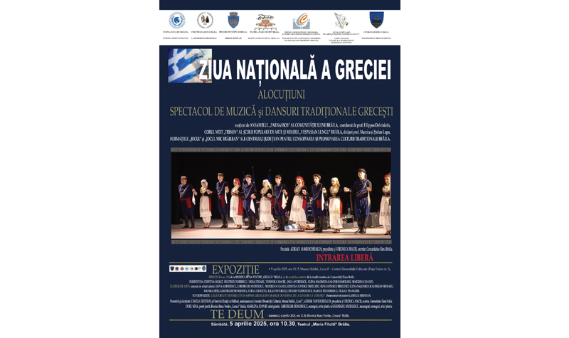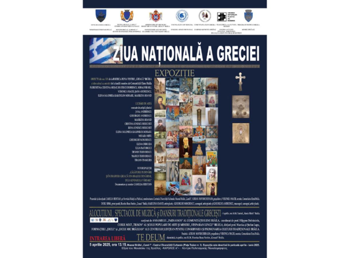 Comunitatea Elenă Brăila, în colaborare cu Muzeul Brăilei „Carol I”, Consiliul Județean Brăila, Primăria Municipiului Brăila, Uniunea Elenă din România, Teatrul „Maria Filotti”, Parohia Buna Vestire (Greacă), Centrul de Creație Brăila, Școala Populară de Arte „Vespasian Lungu” și UAPR - Filiala Brăila îi invită pe brăileni - români și reprezentanți ai etniilor, deopotrivă - la festivitățile prilejuite de Ziua Națională a Greciei (25 martie).