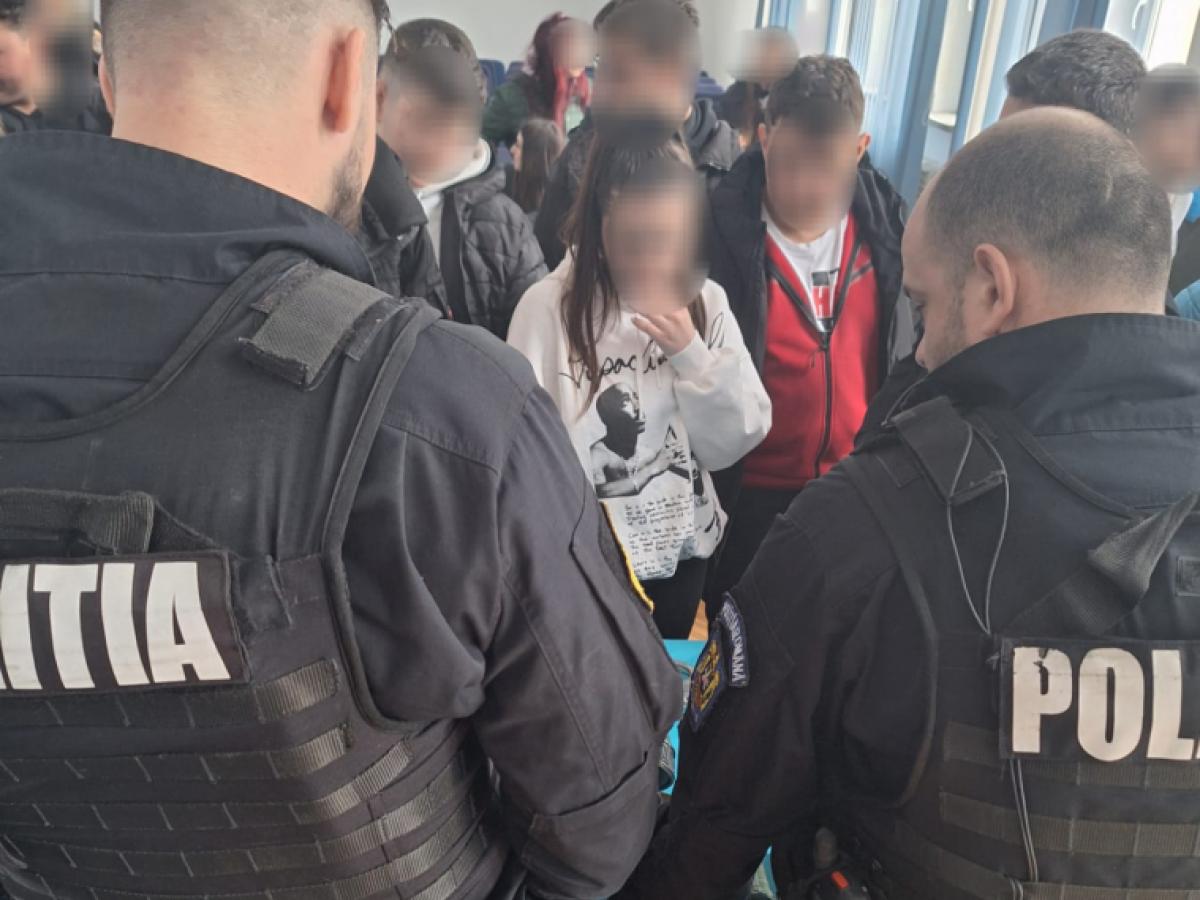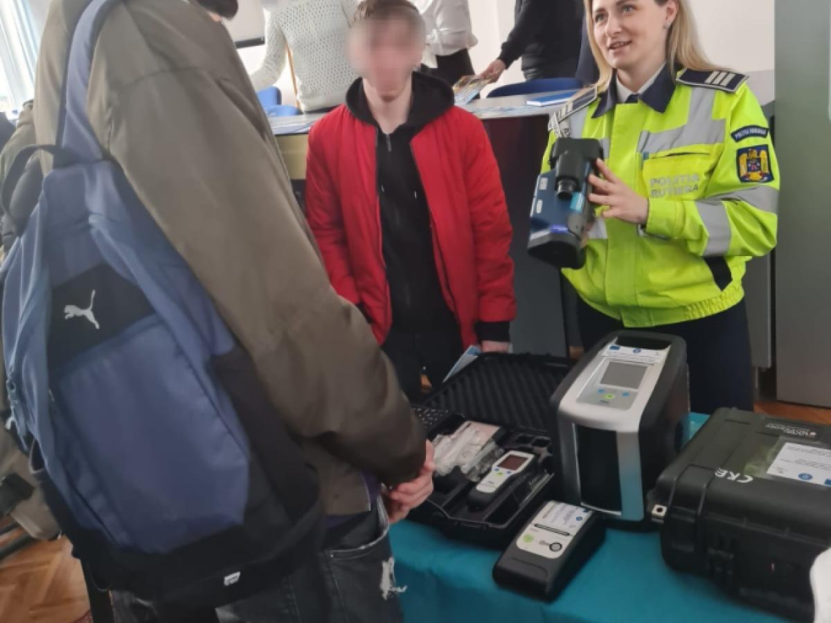 * polițiștii de la Rutier au prezentat elevilor condițiile obținerii permisului de conducere, precum și recomandări privind conduita preventivă pentru șoferii tineri și neexperimentați * le-au fost prezentate modificările aduse legislației, în sensul înăspririi pedepselor, în privința șoferilor implicați în accidente rutiere și depistați pozitiv la consum de alcool sau droguri ilegale * polițiștii rutieri au prezentat elevilor modalitatea de funcționare a unui alcooltest și drugtest * șeful Serviciului pentru Acțiuni Speciale a discutat cu elevii și le-a prezentat tehnica de intervenție a luptătorilor polițiști